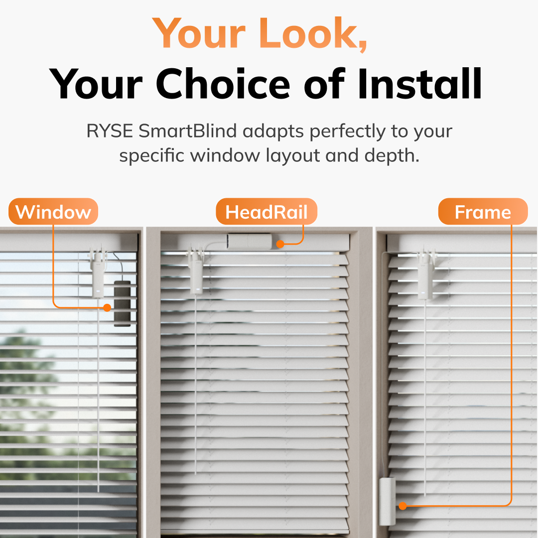 The RYSE SmartBlind transforms your existing horizontal blinds with tilt wand into motorized smart blinds in minutes—no replacement required.