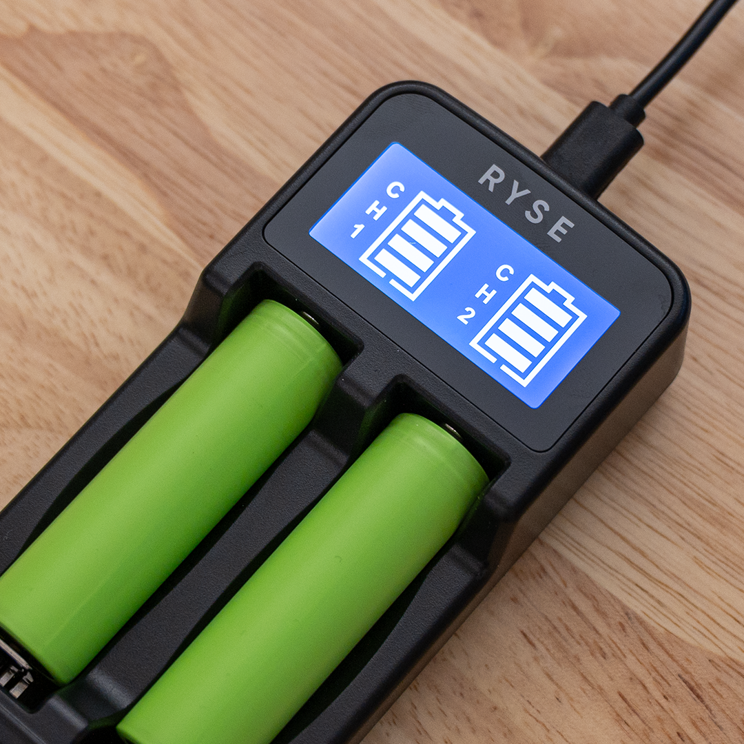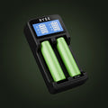 - Dual-slot charger for simultaneous charging of 2 x 18650 Li-Po batteries
